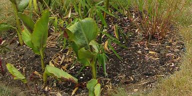 Trop de pluie pour le moment et comme je les ai mis en place depuis seulement cet été on ne voit que les pousses qui mesurent seulement un mètre .On peut apercevoir les cannes que j'utilise pour tuteurer les tomates sur mon post p51/54/...