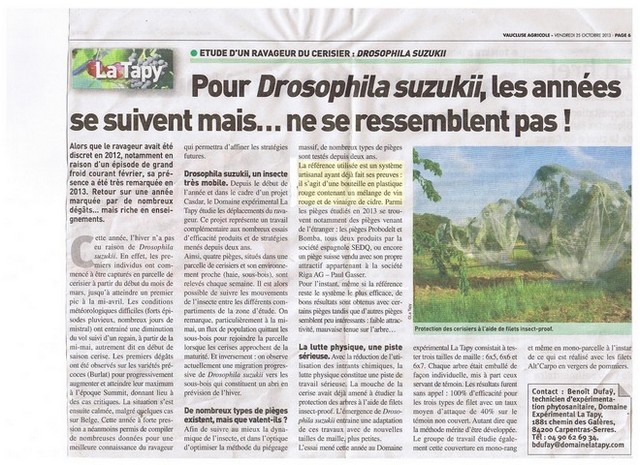 Voici un article de Vaucluse agricole oct 2013