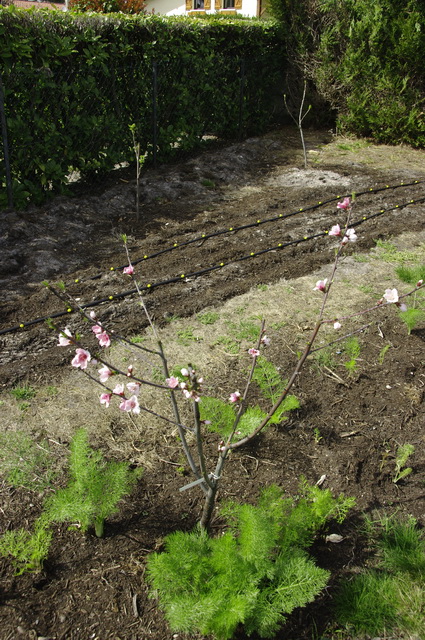 Sur les 6 pêchers que j’ai planté, 5 sont magnifiques et le 6ème « Grosse mignonne » qui été un des plus beau en fin de 1ère année, n’a pas du tout poussé alors qu’il est dans les mêmes conditions que les autres.