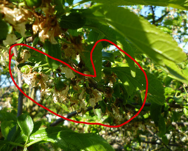 Ou bien encore une période de froid et de pluie durant la formation des fruits (dans les 15 jours suivant la fin de la floraison)