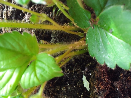 Nous avons un autre genre de fraisier (gariguette, si ma mémoire est bonne, mais rien n'est moins sûr) planté juste à côté et celui-ci n'est pas du tout affecté.
