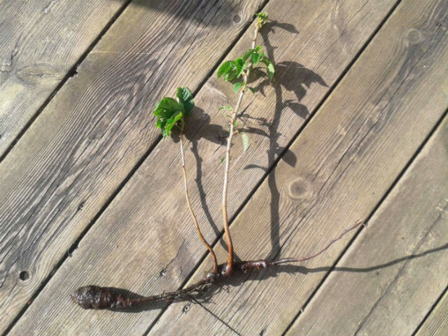 Il y a un drôle d'arbuste/arbre avec une racine en forme de bulbe. Il est résistant car je l'ai déterré il y a plusieurs semaines et juste trempé dans l'eau, il résiste encore.