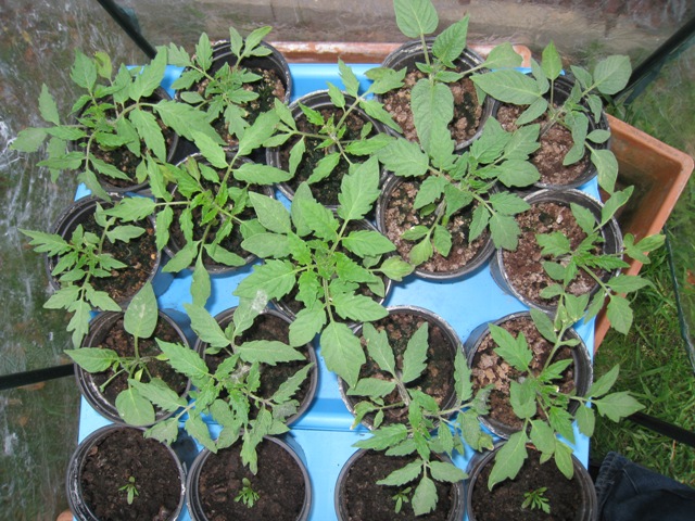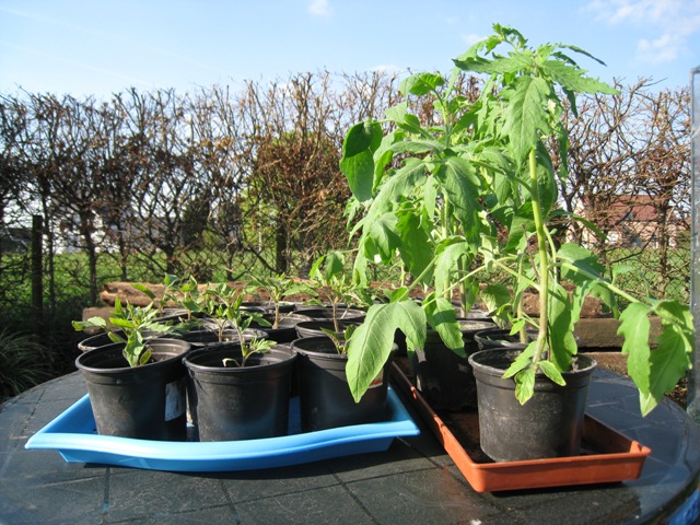 1) Sur la photo, ce sont celles de gauche qui avaient mauvaise mines vers le 23 mars. Je pense qu'elles ont soufferts du repiquage et à cause d'un manque de luminosité ? Depuis fin mars elles sont restées dans une serre à tomates non chauffée et c'est ce qui les a sauvées (bien qu'elles ont végété quelques semaines).