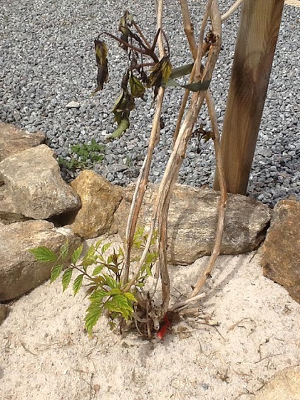 Je crois que tu peux être rassuré, la bignone repart bien par le bas et va donc produire de nouveau des tiges et du feuillage. Laisse fâner les feuilles noircies. si le gel n'a pas tué les tiges marron, de nouvelles pousses devraient s'y former. A voir dans les prochaines semaines. Sinon, tu les couperas + tard.