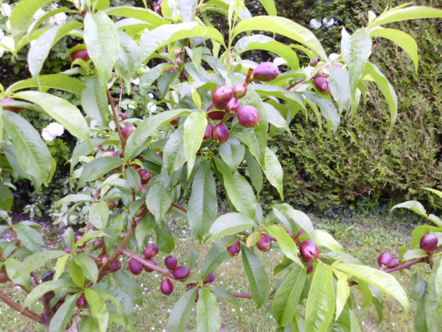C'est un pécher acheté en pot ? Vous pouvez laisser un fruit pour voir la variété