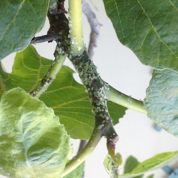 j'ai découvert des trucs bizarres (boutons blancs et verts) sur les branches de mon figuier plutôt vers les feuilles et un peu sur les feuilles (voir photo jointe).