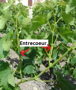 Oui en effet les grappes se forment sur les rameaux de l'année, les rameaux secondaires (entrecoeur) peuvent être supprimés. Un mur au sud est idéal pour palisser la vigne.