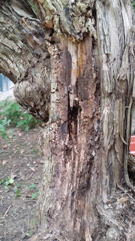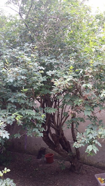 Je vois quelques fourmis se balader dessus (et dedans) et des chapelets de pucerons sur les jeunes tiges. Je me suis toujours dit que son écorce avait l'air louche, est-ce le fait des parasites ou est-ce son habit normal?