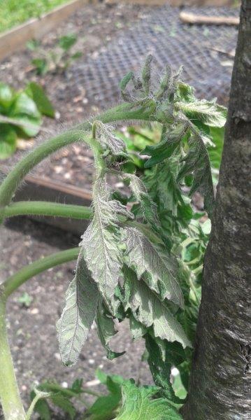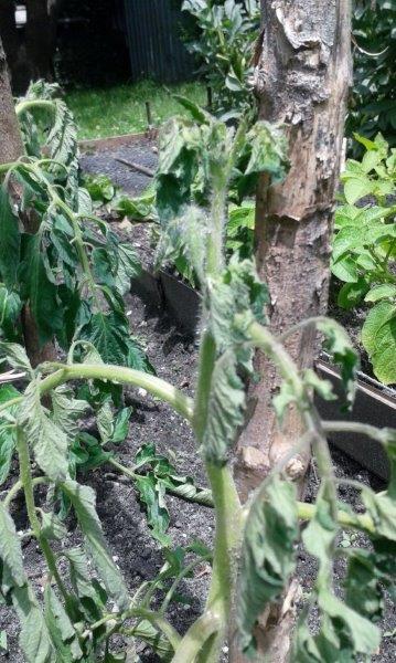 La tomate la plus atteinte est en pot et va certainement rendre l'âme..
