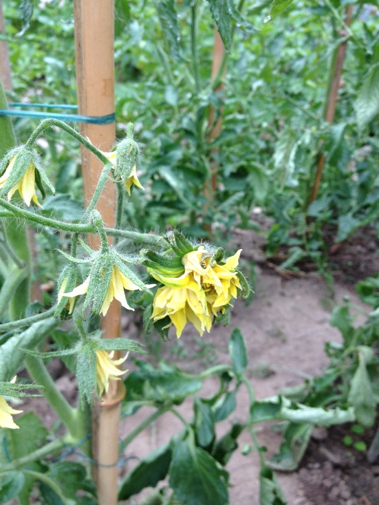 quelques uns de mes pieds de tomates font des fleurs monstrueuses