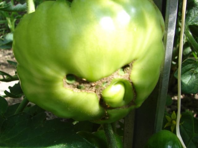Idem, je les laisse vivre aussi ces tomates difformes. L'année dernière, sur des fausses coeur de boeuf, j'ai eu droit à une tomate "paire de fesses", ça a beaucoup fait rire mon fils