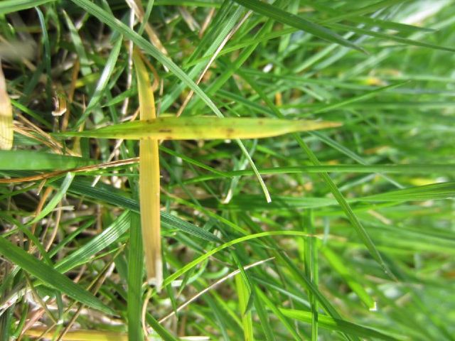 J'ai plusieurs endroits de ma pelouse ou elle est un peu jaune. Parfois ce sont des sortes de petit rond jaune ou des zones plus étendues. Des fois les brins d'herbes sont a moitie jaune, parfois ils ont des points noir, parfois ils sont tout jaune.