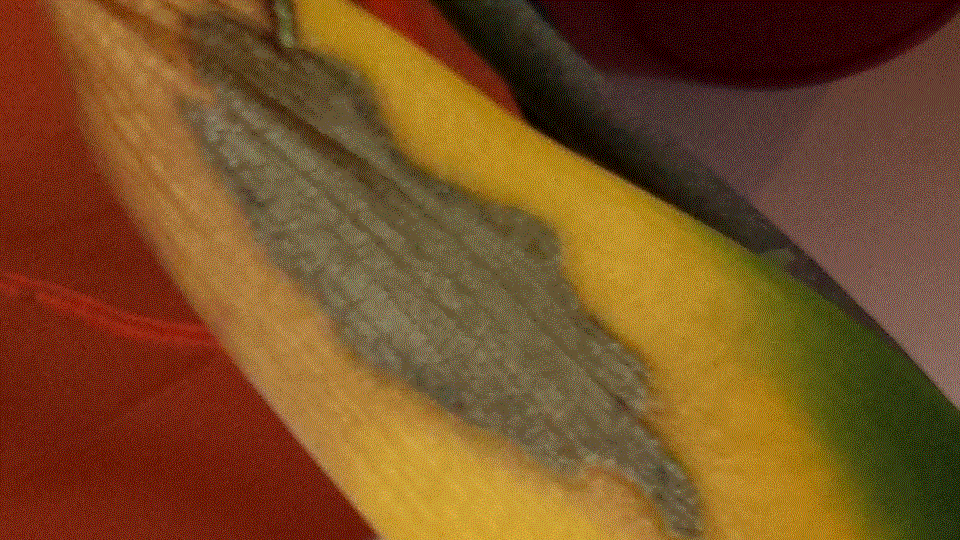 Trop exposée au soleil direct sûrement, pour la tache foncée, ça semble être une brûlure.