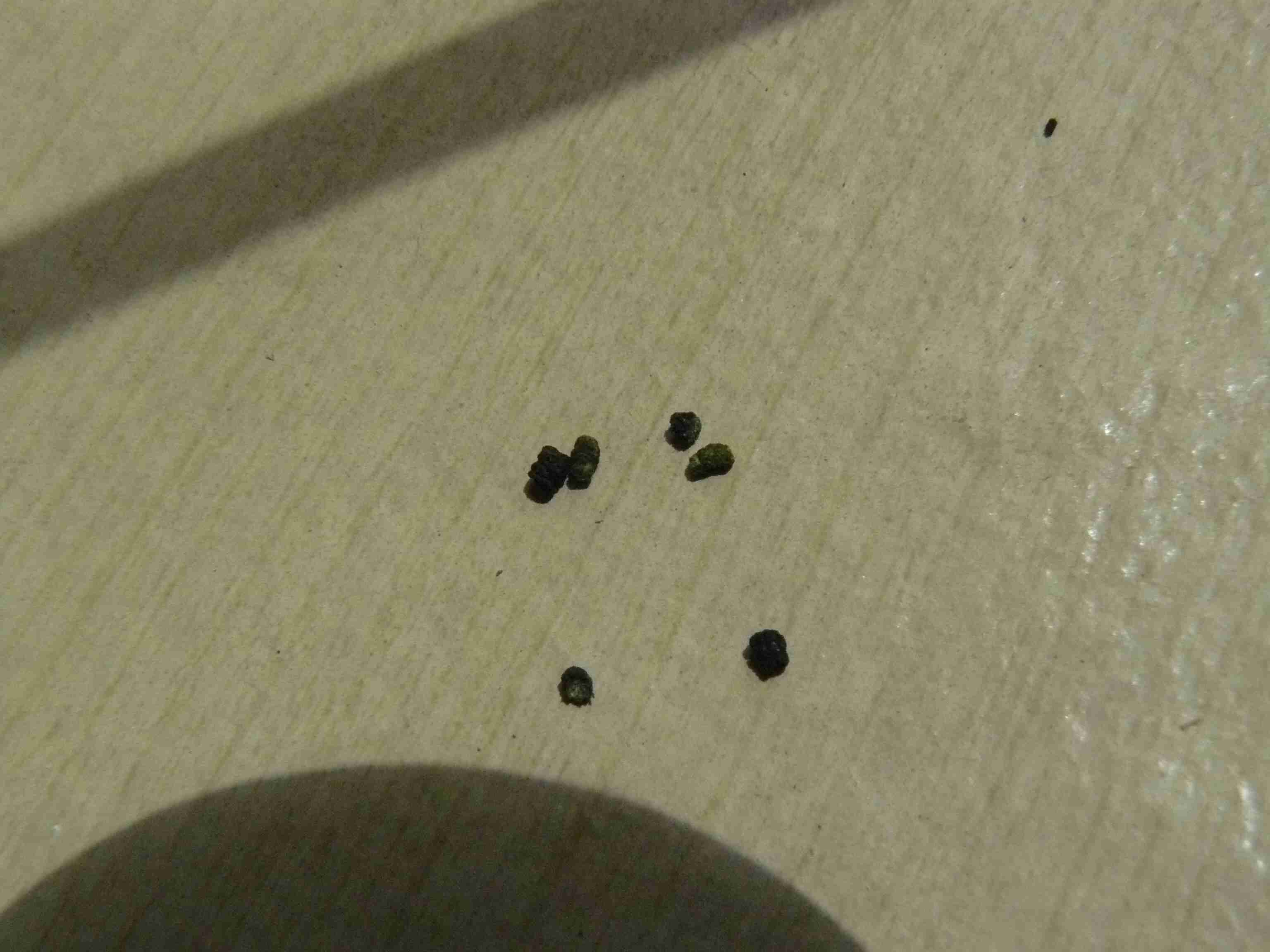 Ce matin, j'ai également remarqué de petites "crottes" dures, toutes petites (environ 1 mm), noires ou vertes, partout sur mon balcon.