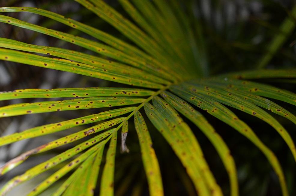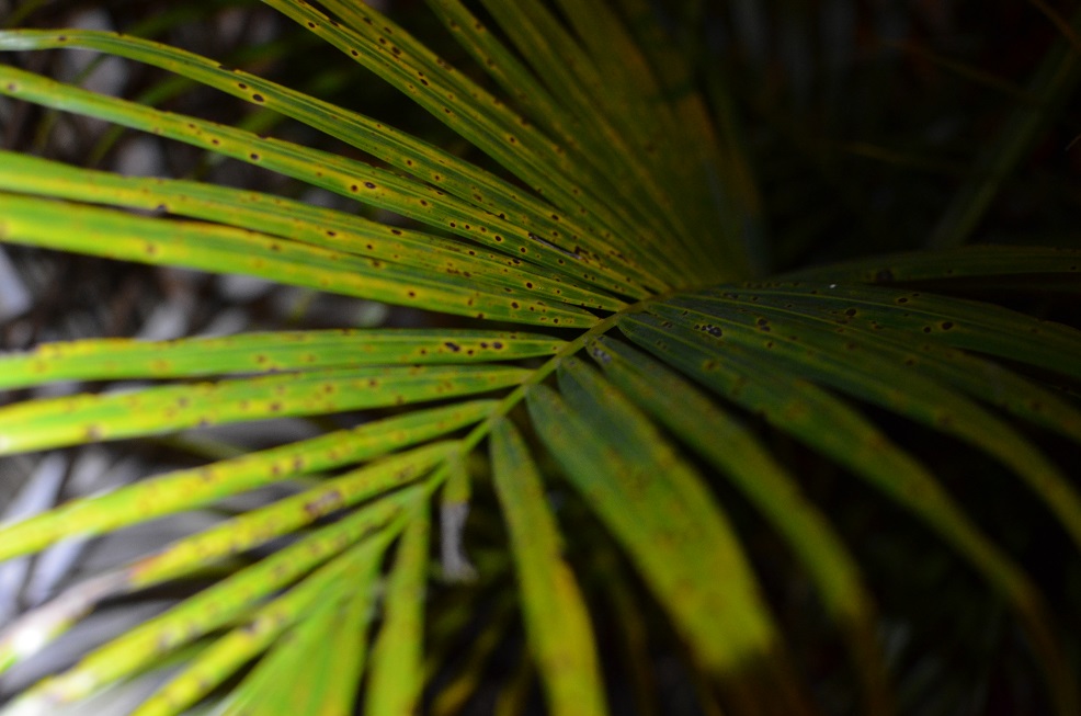 Voici quelques photos qui vous permettront de comparer les feuilles de mon palmier et d'un palmier de même espèce appartenant à un voisin (première photo).