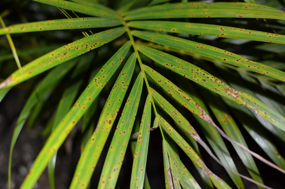 Lorsque j'ai acheté la plante, une bonne partie de ses feuilles étaient jaunies avec des tâches noires (sortes de brulures). Les nouvelles poussent semblent affectées aussi. Il ne semble pas y avoir de parasites et le reste de la plante est relativement vert.