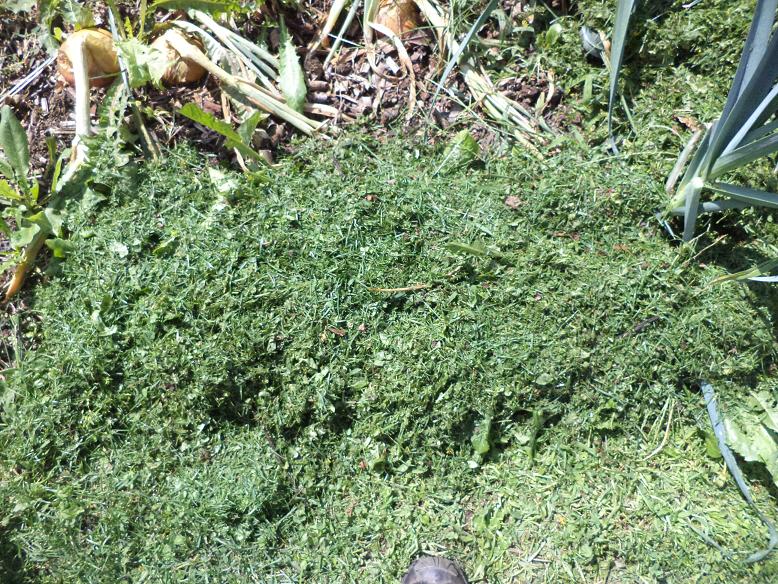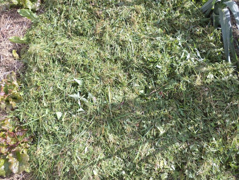 Cet après midi j'ai pailler les herbes qui poussaient à certains endroit avec des tontes de gazon.