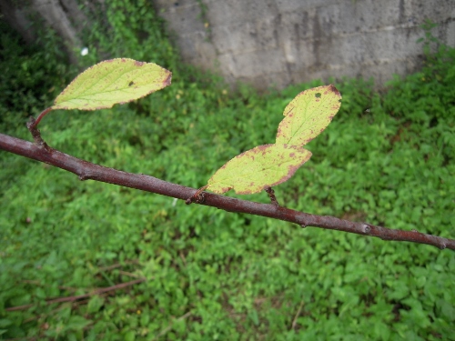 Le mirabellier a été planté à proximité d'un pêcher qui avait des fruits momifiés l'an dernier, que j'ai (un peu) taillé et brossé cet hiver (ou plutôt automne?), et qui va mieux (me semble-t-il mais c'est loin d'être le top).