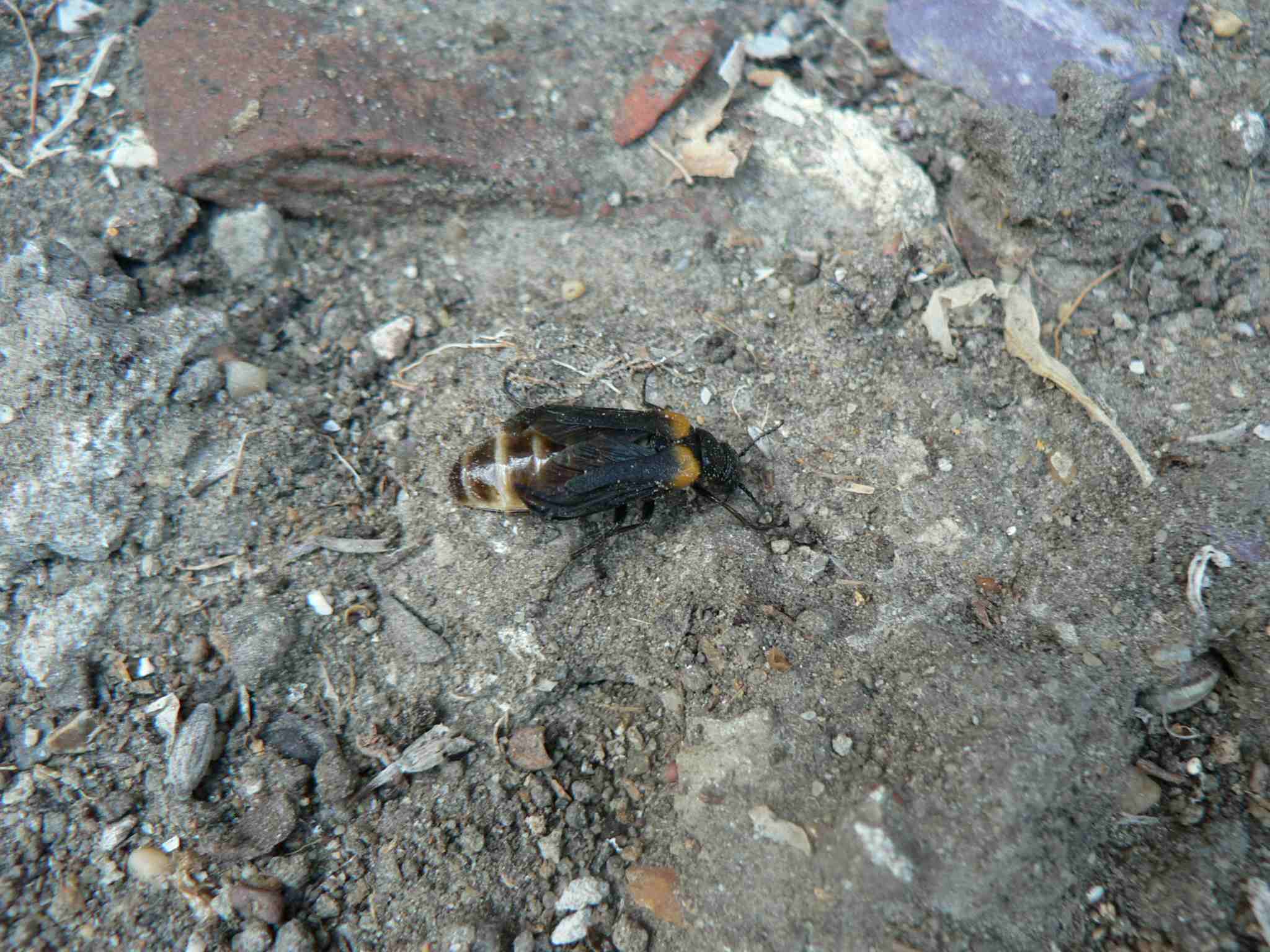 Bonjour, pouvez vous me dire quel cet insecte que j'ai observé près de trous laissé par des bourdons ou abeilles terrestres. J'en ai vu plusieurs et ils sont peu réactifs (ils ne s'envolent pas quand on les touchent). Ils sont noirs, les ont 2 points jaunes au départ des ailes qui sont noires également. Merci pour vos réponses