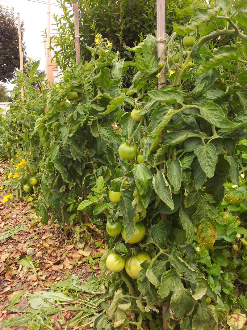 Bien sûr comme la plupart des jardiniers j'ai eu beaucoup de problèmes avec les tomates mais avec le nombre on s'en sort quand même et le mildiou semble se calmer :les nuits fraiches et le soleil dans la journée ne lui plaisent pas trop et c'est tant mieux.
