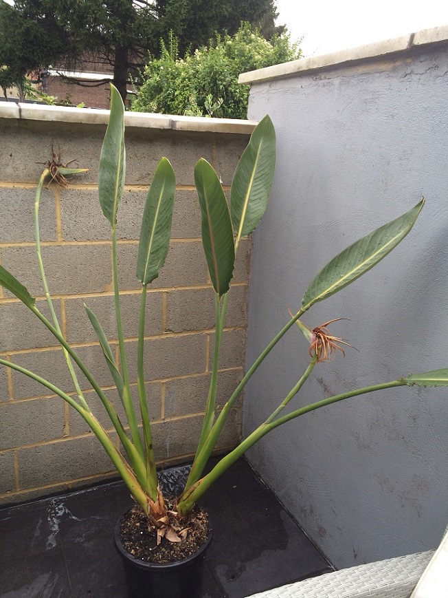 bonjour je possède un beau oiseau du paradis il a fait 2 belle fleurs mais elle sont fanée maintenant je ne sais pas si je dois les couper ou pas certaines personnes me dise que oui d autre non voici quelques photos .