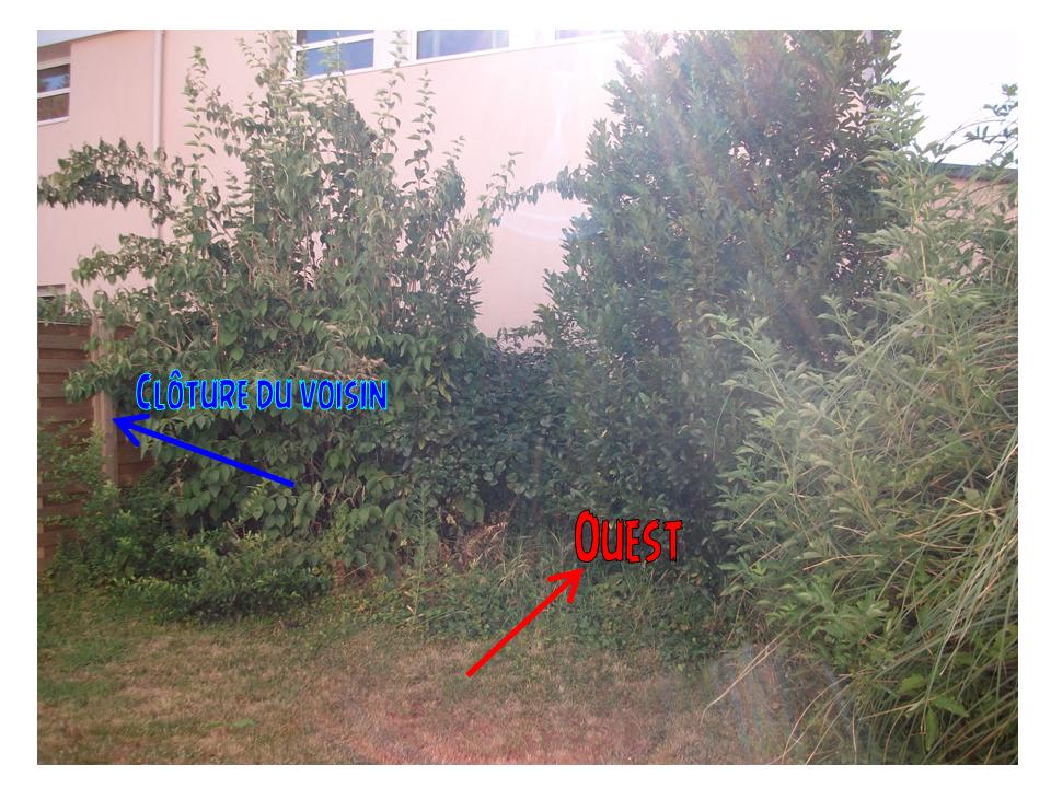 Voici quelques photos prises début juillet avec quelques précisions d'orientation : La semaine dernière, mon proprio a débarqué avec la tronçonneuse et débrousailleuse. Il a fait le grand ménage !