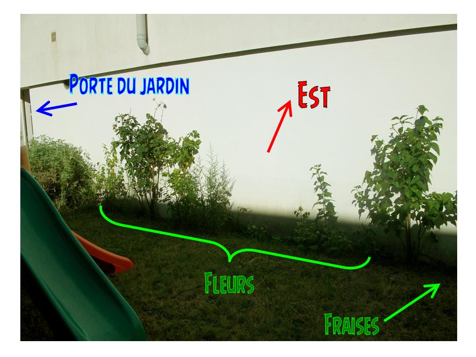 Si je comprends bien, ce jardin n'est pas très ensoleillé. Il est caché par la maison le matin et le restant de la journée il est entouré d'arbustes.
