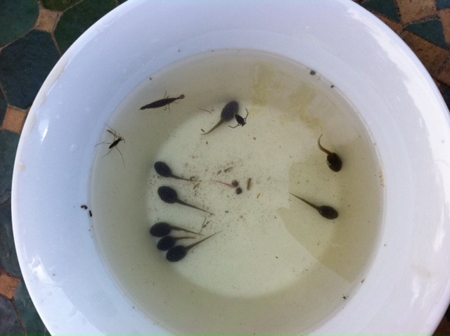 les grenouilles nous ayant fait l'honneur de venir dans notre mare naturel et d'y déposer leurs œufs, nous avons voulu les observer de plus près avec mon fils, et voici qu'un habitant inconnu s'est glissé dans le lot ...et incapable de l'identifier. Quelqu'un saurait il ce que c'est? ( forme de petite crevette, avec un "nez" plat") qui se met souvent à la verticale... (en bas sur la 1ere photo et en haut vers la droite sur la 2eme)