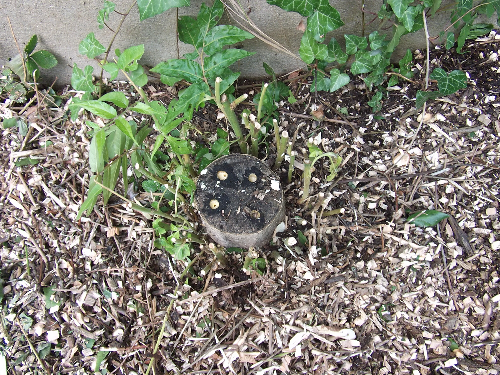 Mon ailanthe, je l'ai traité au chlorate de soude. 4 trous de 10 mm remplis de produit et saupoudrage autour.