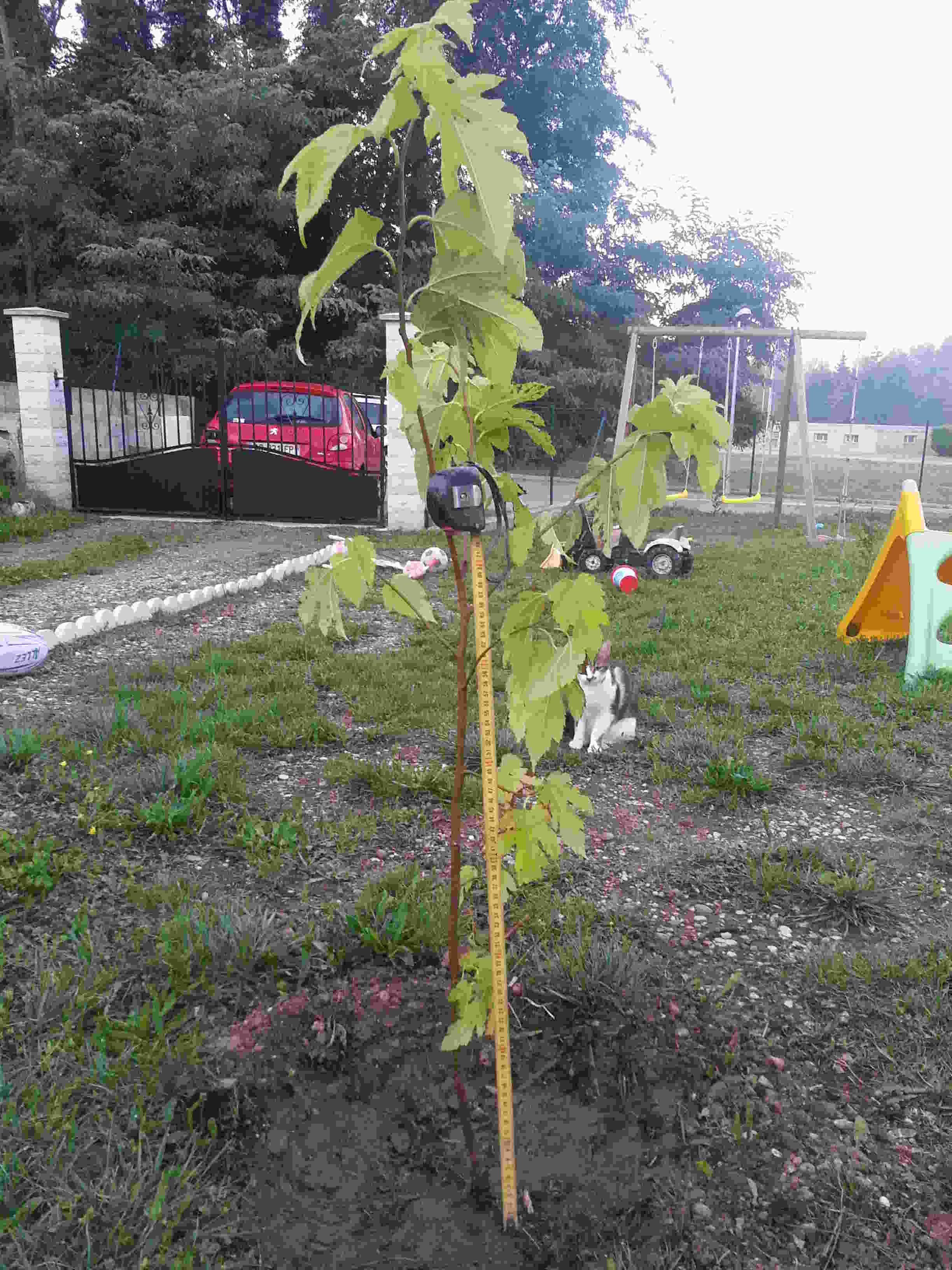 A hauteur du dérouleur sur mon mètre il est à 70 cm environ. Je souhaiterai que cet arbre grandisse d'au moins 90 cm pour lui donner une forme parasol.