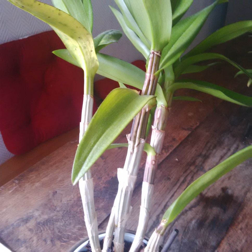 J'ai trois dendrobiums malades, apparemment avec la même maladie: des tâches jaunes, qui ressemblent à des picures. En quelques jours la feuille atteinte devient brune, puis jaune, et les tâches deviennent noires. La feuille chute.