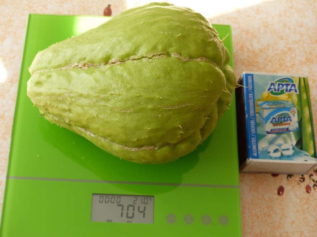 Un total de 14 fruits pour 6,1 Kg, soit 435 g par chayotte.