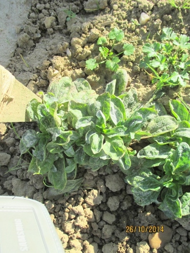 Les feuilles sont grisâtres mais ne se désagrègent pas et il y a des taches blanches également surtout sur les feuilles des céleris.