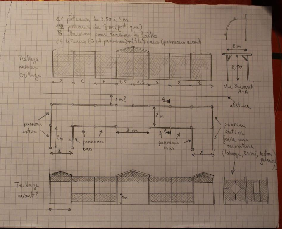 Merci pour cette approbation du projet. Le raisonnement était simpliste, si de simple panneau ne tiennent pas au vent, il leur faut des jambes de force. Mais comme cela n'est pas très beau, pourquoi ne pas la doubler et réaliser une sorte de galerie, comme une treille de fleurs. Ensuite, pour joindre l'utile à l'agréable, implanter une pergola à son centre, afin de jouir du point de vue après l'ouvrage...