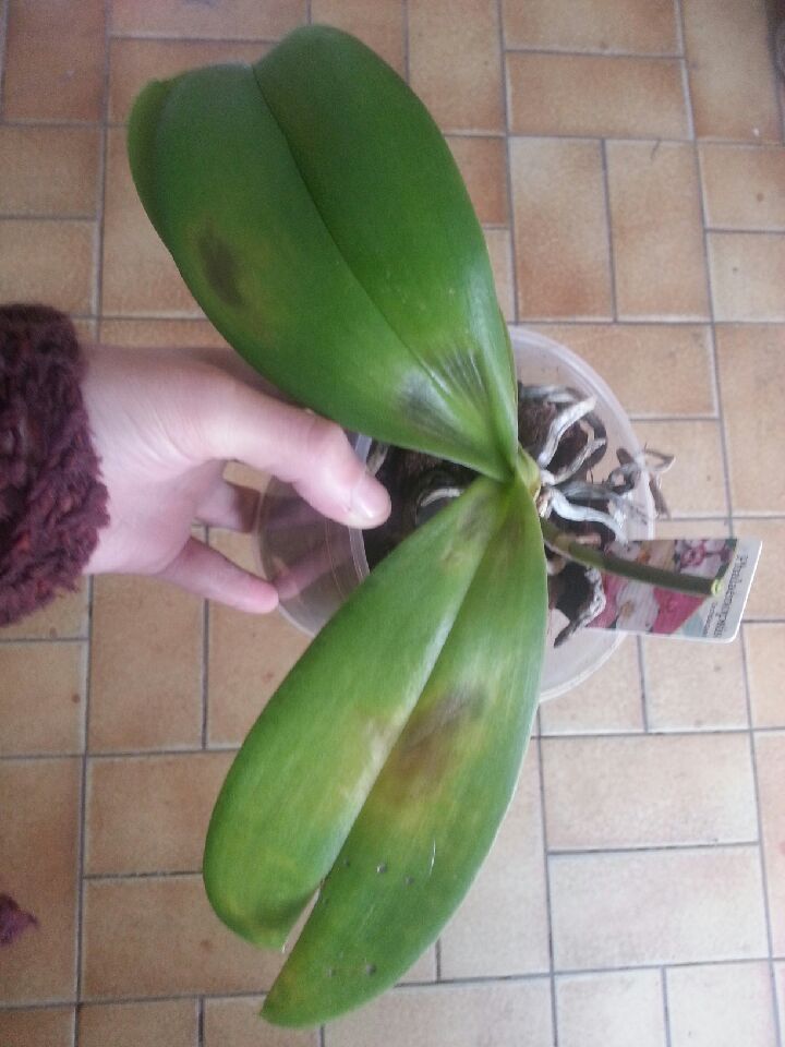 J'ai récupéré une orchidée (Phalaenopsis) de la poubelle qui je suppose a pris un gros coup de froid comme vous pouvez le voir sur la photo.