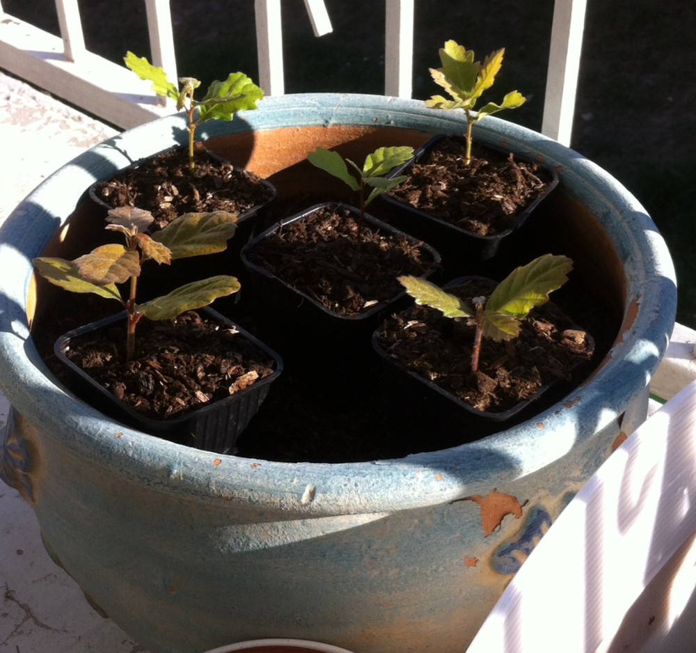 4) Mettre les glands, un par un dans des petits pots, enterrés à 1 fois et demi leur hauteur.