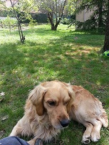 Le potager est grillagé à cause du chien. Il aime bien les "fraises" surtout celles cueillies sur plants lol. Il prend aussi les courges pour des joujous.