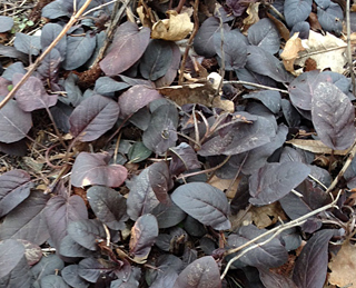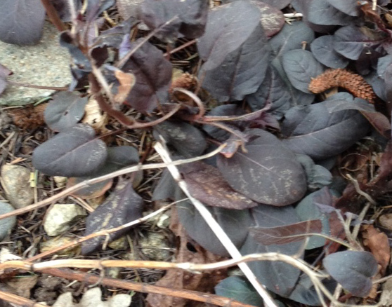 Hier j'ai vu cette plante dans un massif. J'étais surpris de rencontrer une vivace couvre sol au feuillage pourpre en plein hiver. Elle ressemble à l'Ajuga mais on dirait que c'est une autre espèce car son feuillage semble lisse. Est ce que qqn d'entre vous la reconnait svp ?