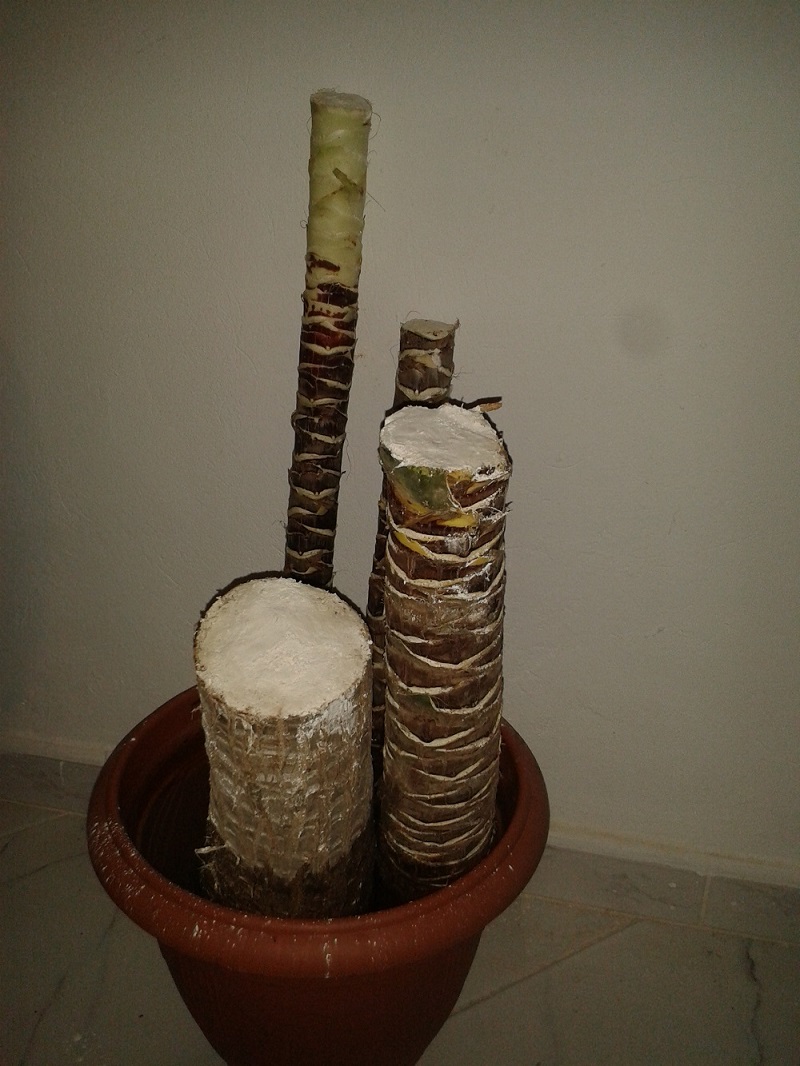 ce weekend j'ai récupéré un tronc géant d'une yucca de jardin, j'ai essayé de couper le tronc en 4 morceaux puis j'ai les mis dans l'eau. (voir photo ci-jointe)
