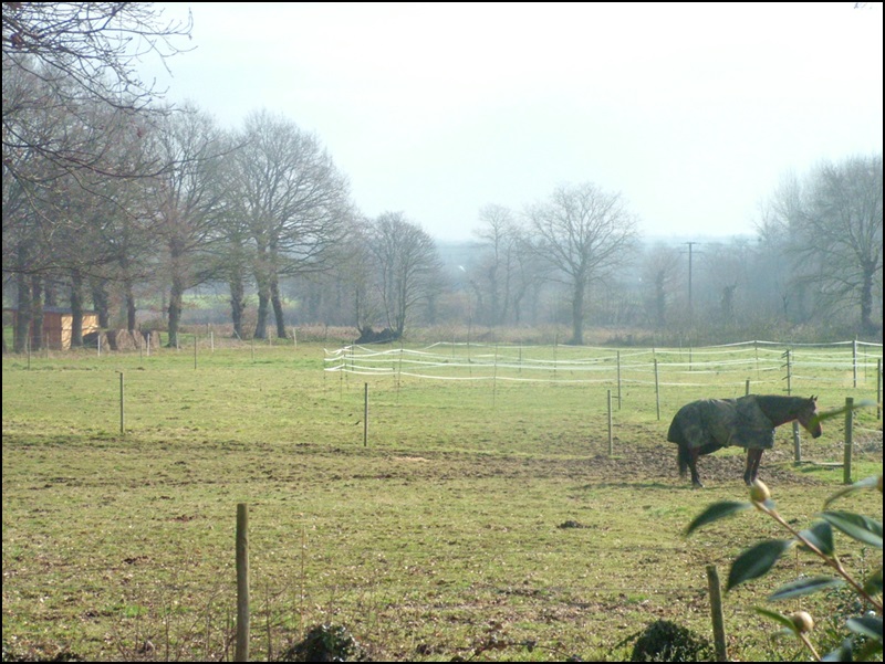 pas de paddock paradise, même si ce serait parfait pour ma fourbue chronique. Juste un paddock de boue :lol: que tu peux voir sur la 1ère photo. Les 3ème et 4ème photos sont celles du pré des voisins :D