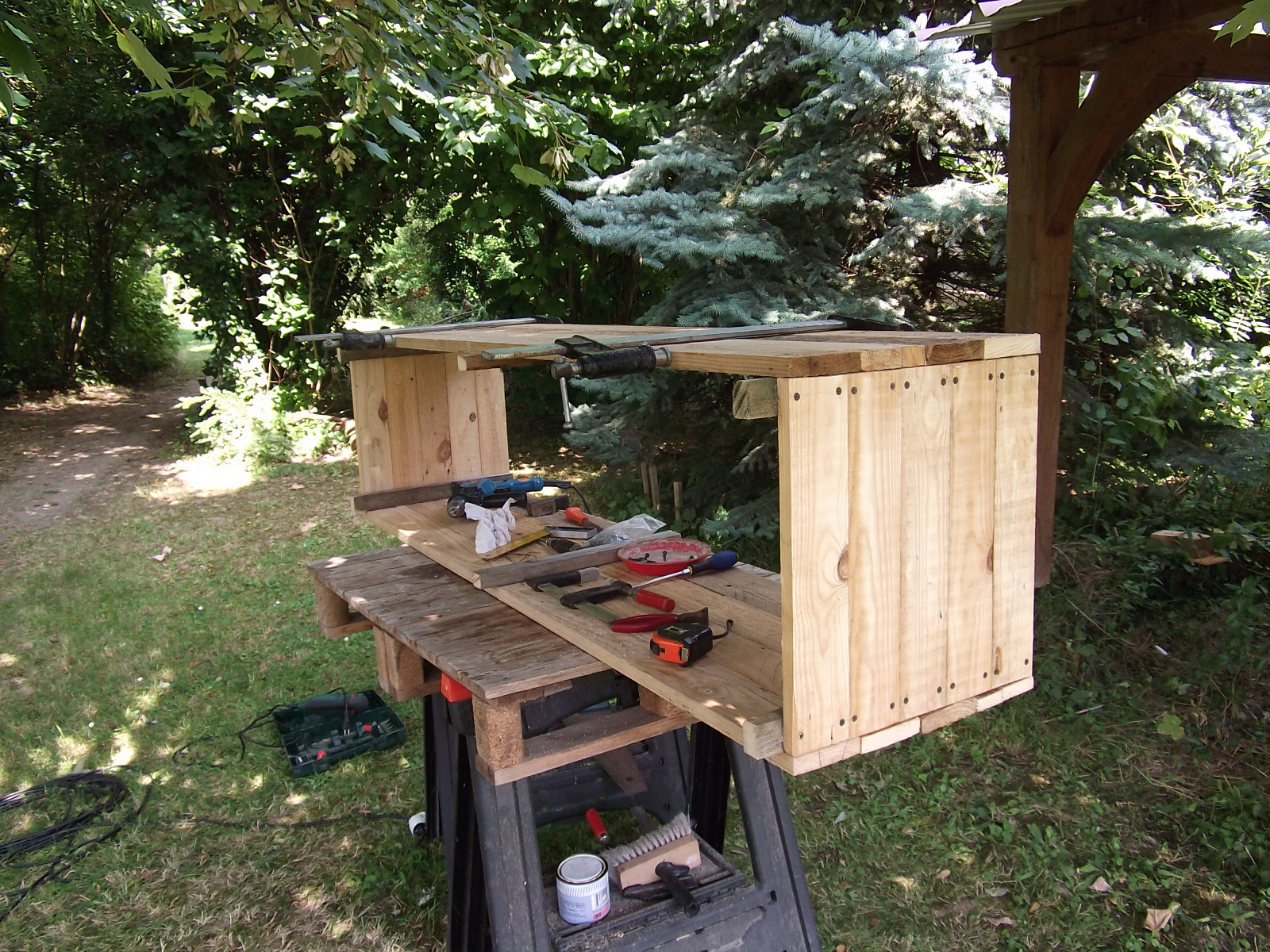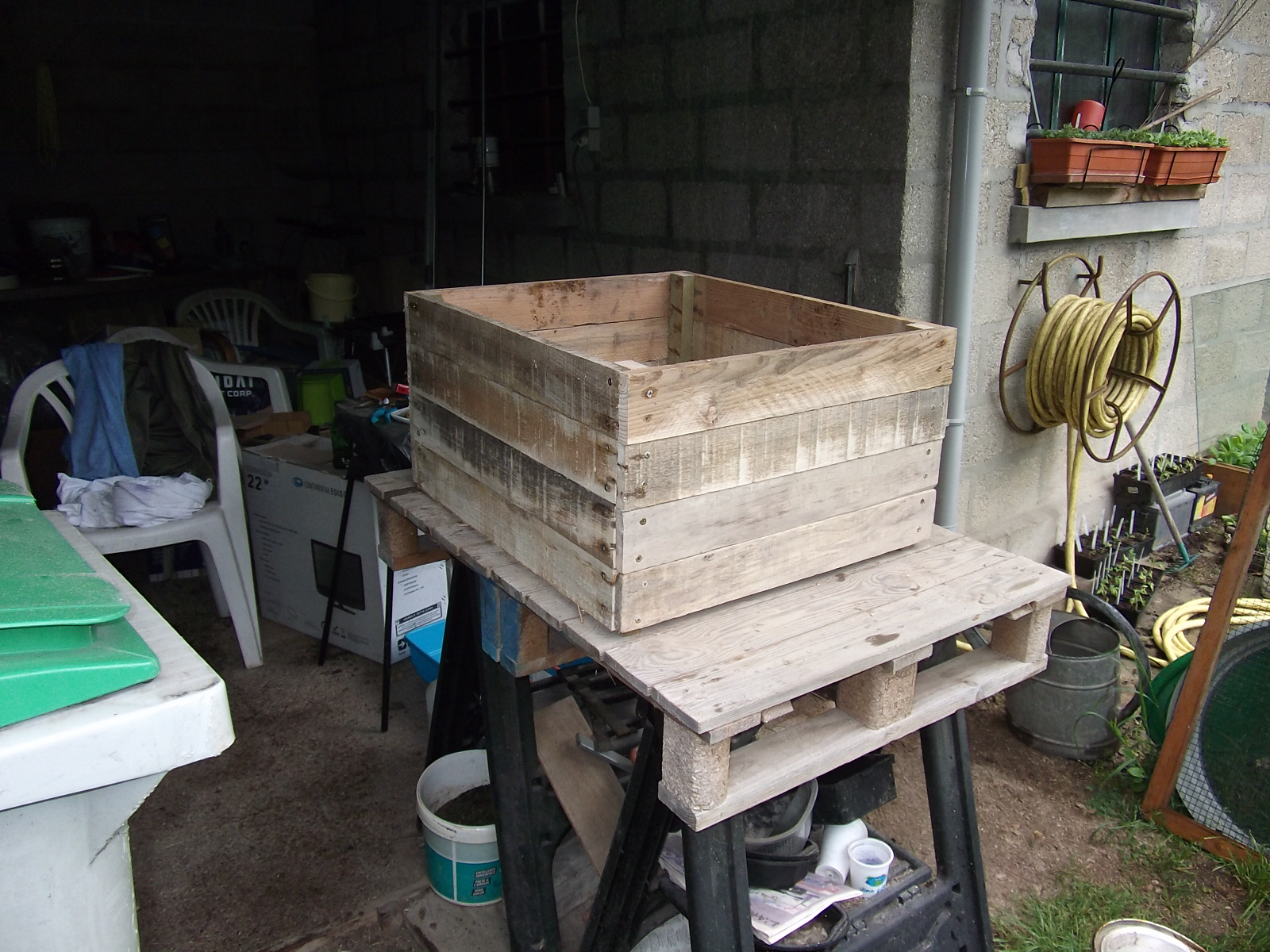 Le sujet a déjà été évoqué mais voici quelques photos de la fabrication de jardinières en bois de palette.
