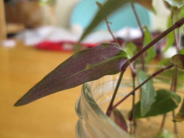 Les photos ont été prises il y a un an mais désormais la plante (retombante) a des tiges de plus de 1,5m ! Le dessous des feuilles est violet, les feuilles sont assez petites.