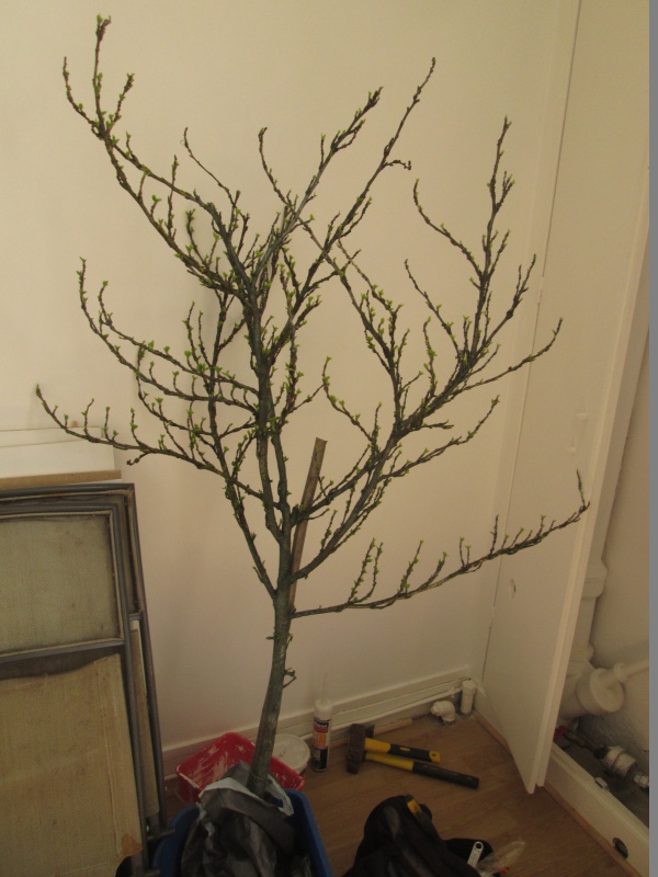 j'ai trouvé cet petit arbre (1,8 m à son point le plus haut) vraisemblablement arraché, le reliquat de système racinaire dans un sachet plastique, sur un trottoir parisien. J'aimerais le repiquer au plus vite dans un pot pour essayer de le sauver, en attendant de trouver où le planter si c'est nécessaire, car je doute qu'il puisse supporter une culture en pot vu sa taille (je me trompe?). Il est en train de sortir ses feuilles, mais je n'arrive pas à l'identifier. Quelqu'un saurait m'aider ?