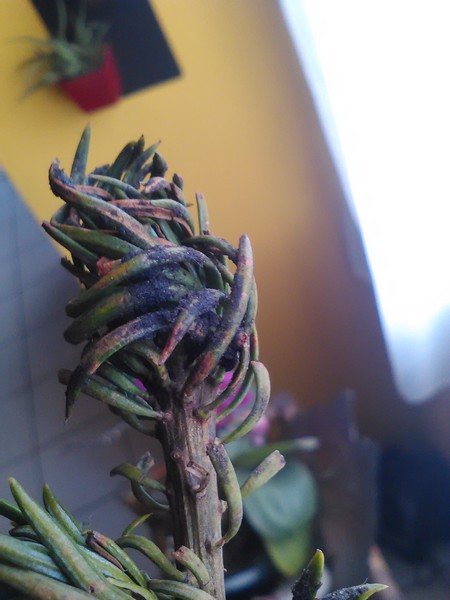 Mais ce soir, j'ai encore trouvé de cette "matière noire" sur les pieds, comme des minis oeufs. Et pour l'instant à peine la moitié ont repris ... :/ Les autres jaunissent et certains sont déjà morts.