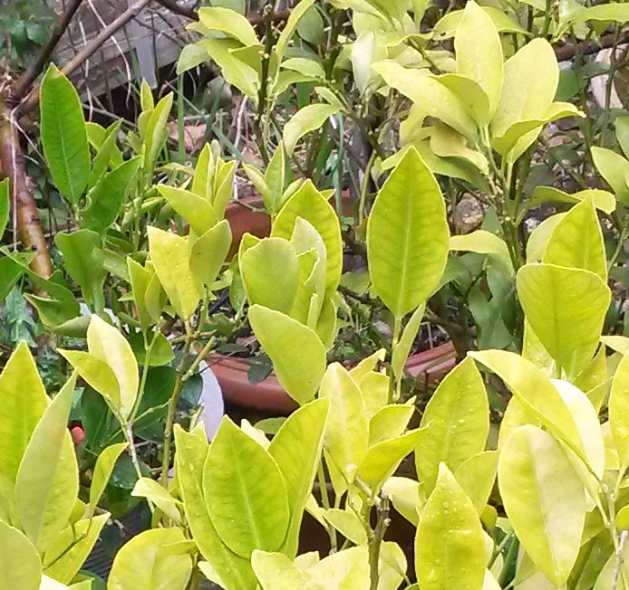 Les feuilles de 3 de mes agrumes sur 4 (calamondins, citrons, Kumquat...) sont très claires.