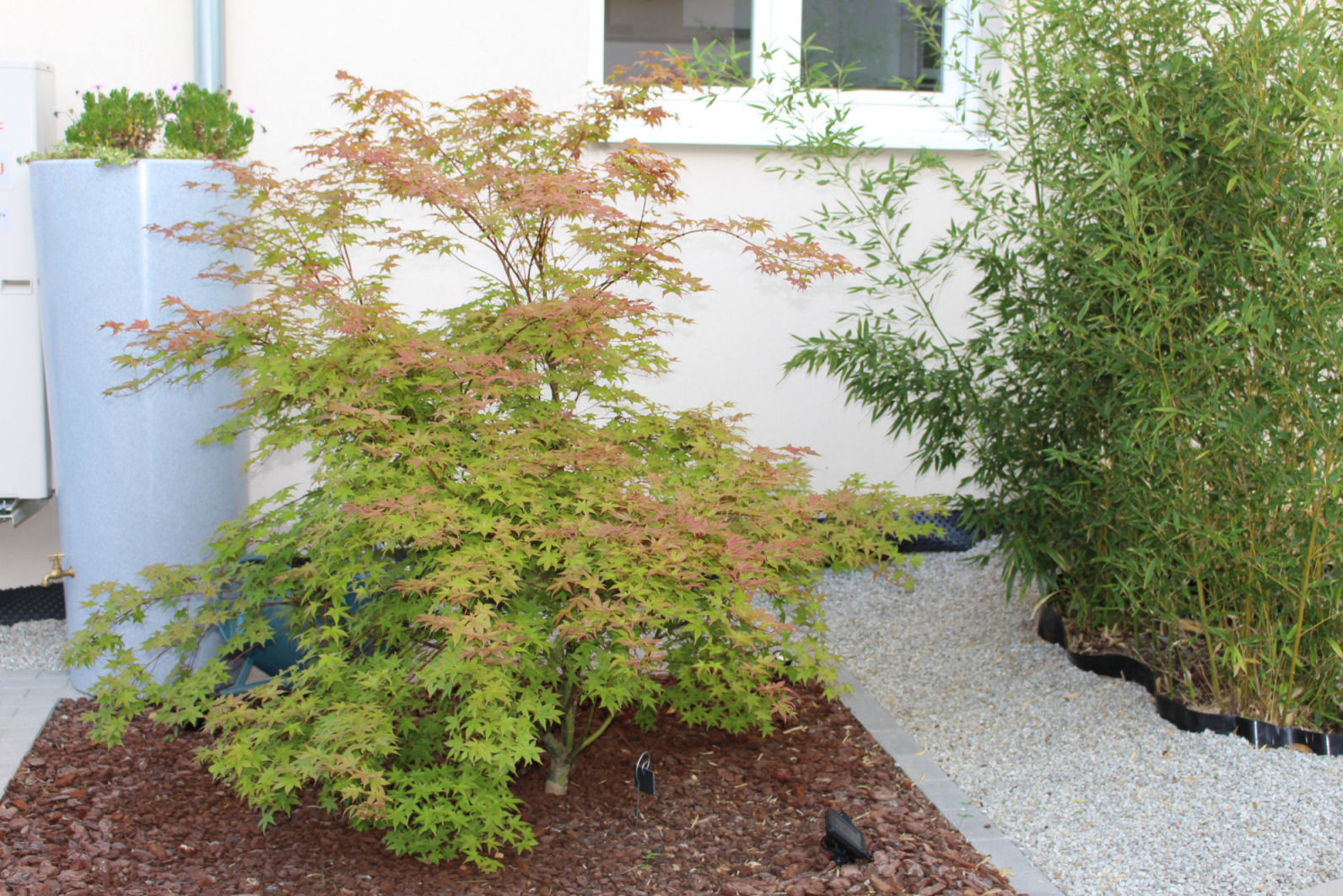 Le soir ou il a fait presque 30° il aurait suffi de 'brumiser' le feuillage et 2m autour des Acers pour humidifier l'air à la tombée du jour. D'une part les feuilles des Acers absorbent très vite l'eau qui leur manque et de l'autre les fines gouttelettes en s'évaporant font rapidement tomber la température.