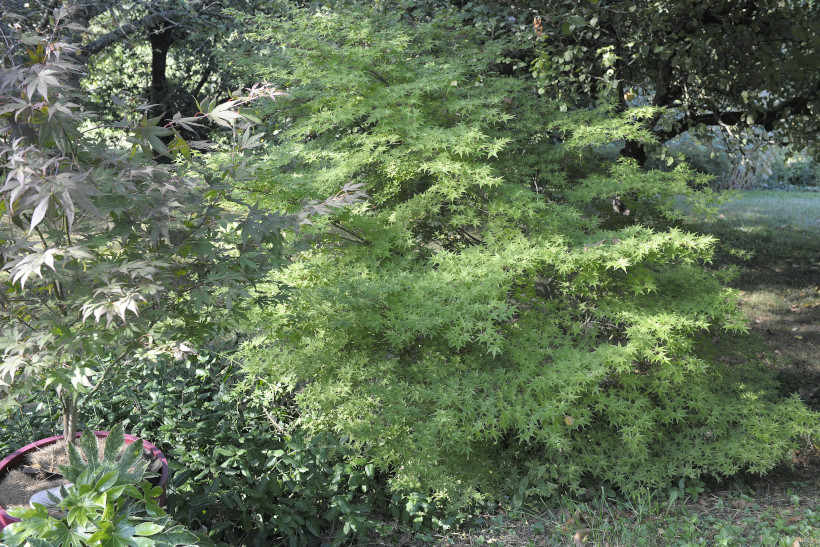 -"J'en ai un qui pousse à l'ombre , planté il y a 12 ans, un modeste 2,5 m (3,5 m plutôt) à petites feuilles de 5 lobes . Planté sous de grands arbres , moins de soleil donc moins de ressource carbonées=racines plus faibles, ajoutons la concurrence des racines des grands arbres , la croissance du palmatum type est limitée. Mais tu n'as pas de sous-bois !