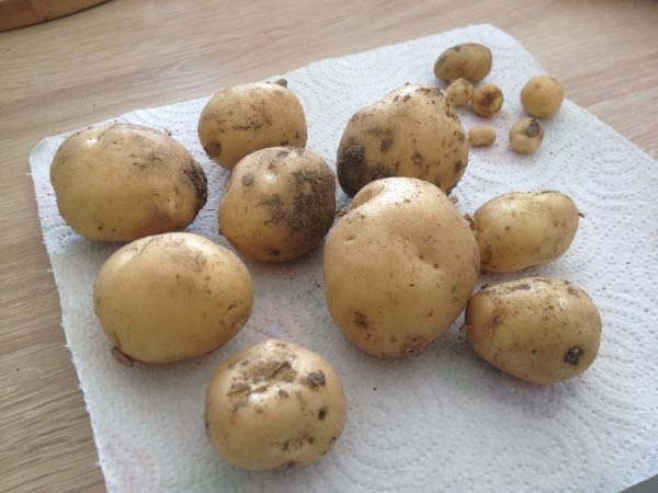 Comme c'est ma 1ère année de patates, je n'ai pas de repères sur les rendements et sur la quantité à attendre pour les primeurs. Je ne vous cache pas que je ne m'attendais pas à récolter 4 kg par pieds, mais là ça fait light quand même.