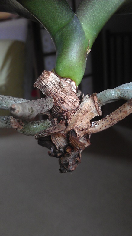 Le début de hampe du phal problématique a séché :( :( . Tant pis! Vaut mieux qu'il se refasse une santé :( et surtout des racines.