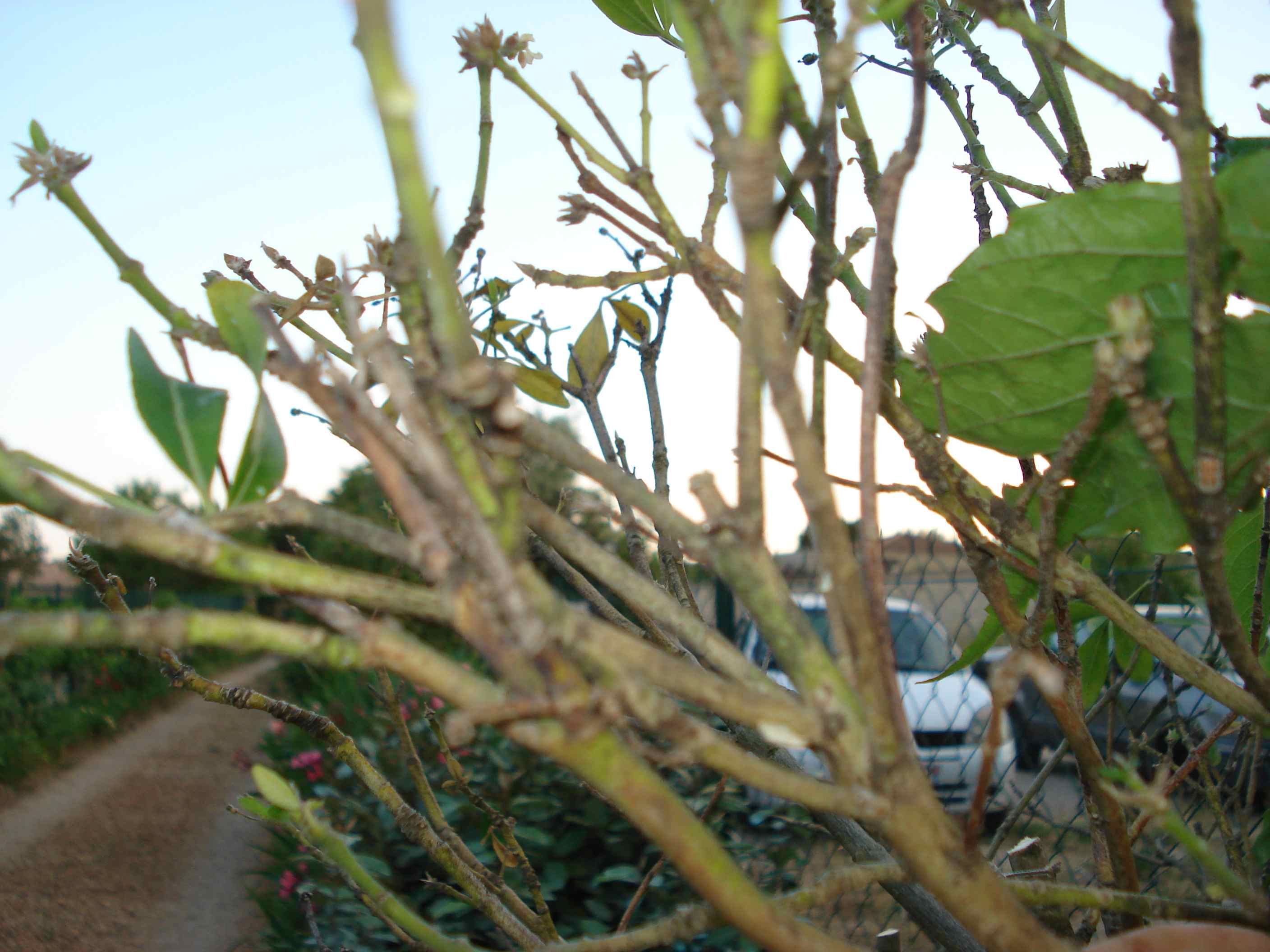 Mon collègue a un oranger du Mexique qui perd ses feuilles: elles jaunissent et tombent. Les rameaux prennent des plaques noires. Il lui semble pour l'instant que ça ne touche pas toute la plante. Un traitement à la bouillie bordelaise vient d'être fait. Il ne l'arrose jamais (sauf après le traitement). La plante a environ 8 ans. Elle est dans une haie mixte, taillée régulièrement et les autres plantes voisines ne sont pas malades (dont un autre oranger du Mexique et un Teucrium fruticans)